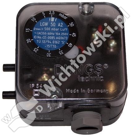 Presostat LGW 3 A2, ciśnienie max. 500 mbar, zakres ciśnienia 0,4 - 3 mbar, połączenie: wyprowadzone króćce na wężyk silikonowy